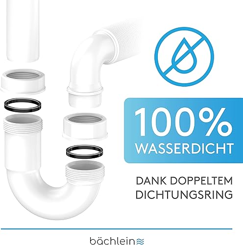 Bächlein flexibler Röhrensiphon für Küchenspüle - Geruchsverschluss mit einfachem Geräteanschluss - Siphon für die Küchenspüle - Made in Germany