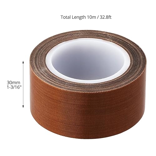 QWORK® 30mm x 10M Klebeband Teflonband - PTFE Glasgewebeband Hitzebeständig 300°C - 0,13 mm Dicke