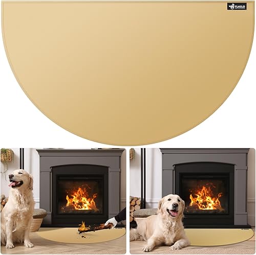 FLASLD Feuerfeste Kaminmatte 81×152cm Halbrunder Herdteppich Schützt Böden vor Funken Glut, Braun