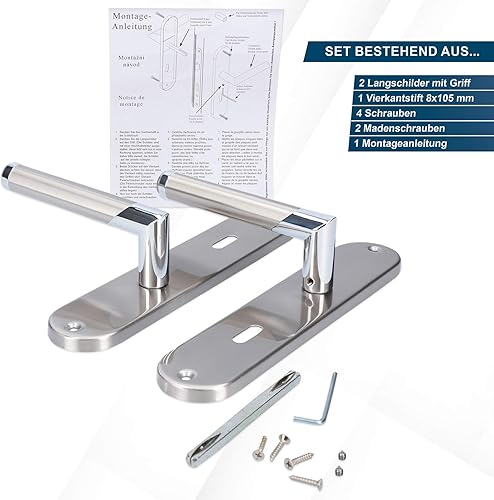 Alpertec Edelstahl Renovierungsgarnitur (I) BI-Color für Zimmertüren Drückergarnitur Türgriffe Türdrücker, 88021880 …