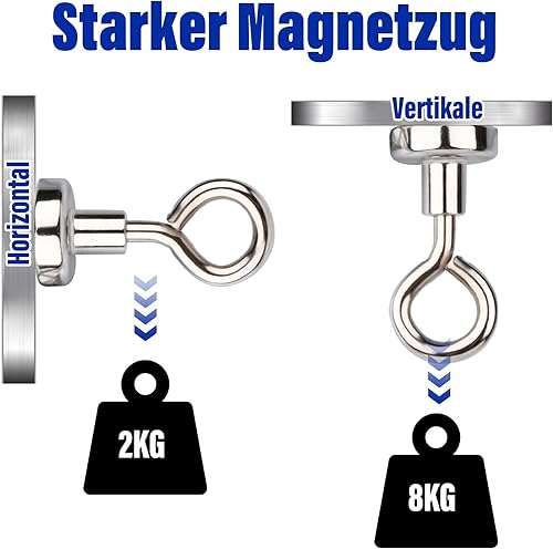16 Stück Magnethaken Extra Stark,8KG Magnet Haken Neodym Magnethaken,Ösenmagnete klein,16MM Super Starker Magnete mit Haken Magnetischer Haken für Garage Bad Küche Büro