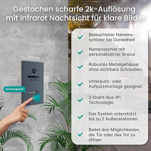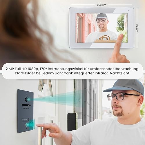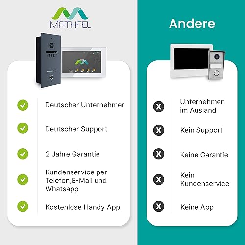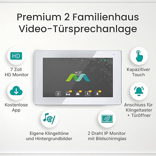 MATHFEL 2-Draht-Bus WLAN Video-Türsprechanlage – 7-Zoll Full HD Touchscreen, 170° Kamera, Fingerprint, Gegensprechanlage für 1-Familienhaus, wetterfest IP65, Türklingel mit App-Steuerung