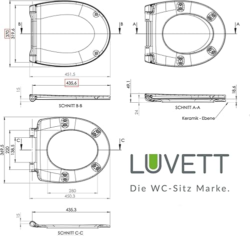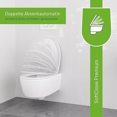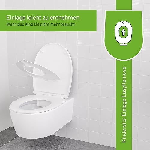 LUVETT® Toilettensitz Kinder C490 Family WC-Sitz universal mit Kindersitz-Einlage, Toilettendeckel mit SoftClose Absenkautomatik für Kinder & Erwachsene abnehmbar (Weiß)