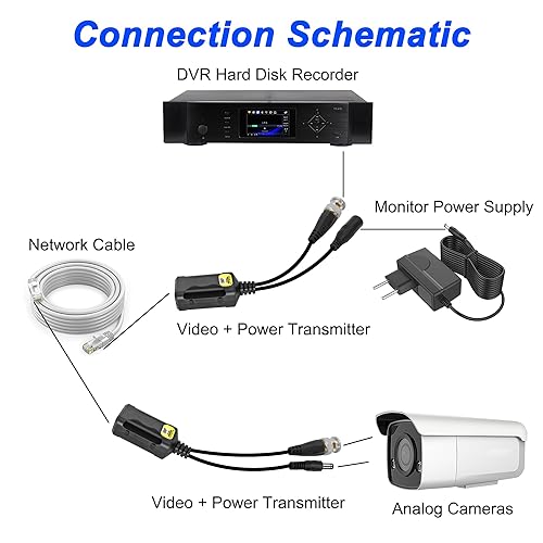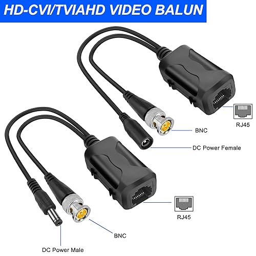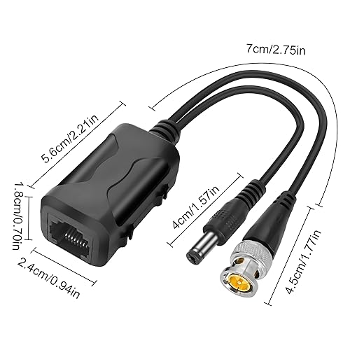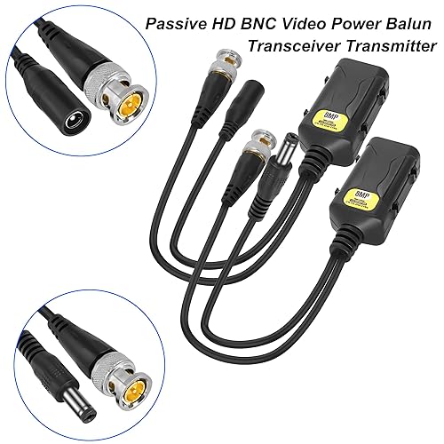 MEIRIYFA Passive Video Balun mit Stromanschluss und RJ45 Datentransmitter BNC Twisted Pair, 8MP Passive HD BNC Video Power Balun Transceiver Transmitter für CCTV Sicherheitssystem (2 Paare)