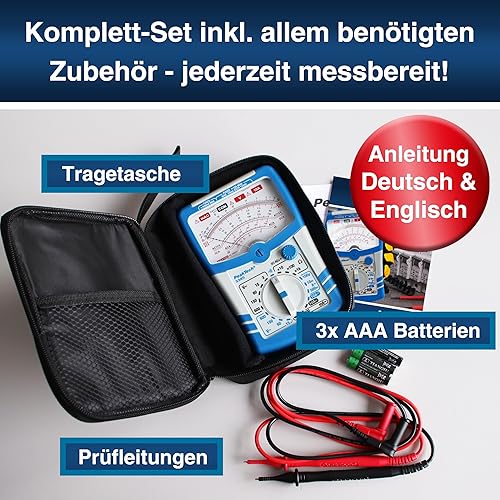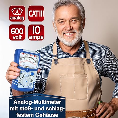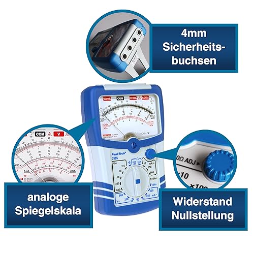 PeakTech 3385, Multimeter analog – Messgerät mit Voltmeter, Amperemeter, Durchgangsprüfer, Ohm Meter, dB, 600V AC DC 10A, geeignet für 230V Elektroinstallation, P 3385
