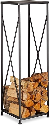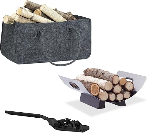 Relaxdays Kaminholzkorb Edelstahl, Feuerholzkorb modern, Kaminholzschale Metall, Holzlege, HxBxT 19 x 37 x 33 cm, silber