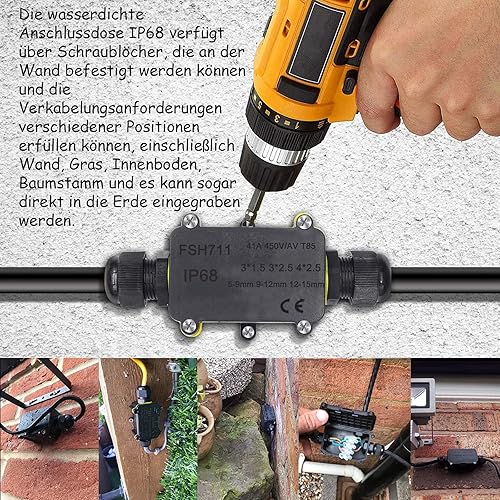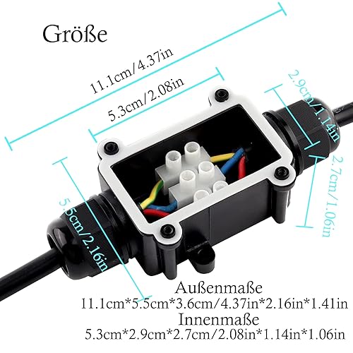 Elezenioc IP68 Wasserdichte Abzweigdose, 2 Wege M20 Verteilerdose Außen Wasserdicht für 5-15 mm Externe Elektrische Stromkabelboxen, Kabelverbinder für den Außenbereich Anschlussdose, Schwarz
