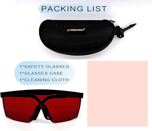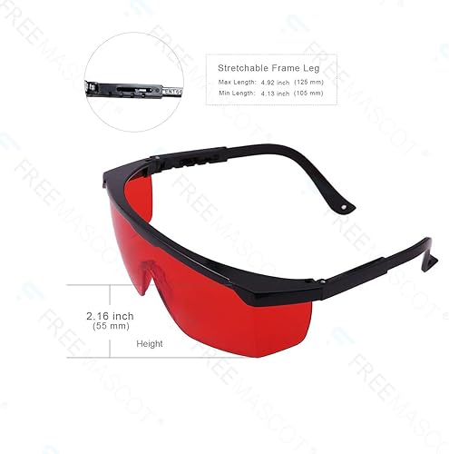 FREEMASCOT OD 4+ 190nm-550nm Wellenlänge Laser Schutzbrille für typische 405nm, 445nm, 450nm, 532nm Laserlicht zur Haarentfernung, Laserbehandlung, Augenschutzbrille (rot)