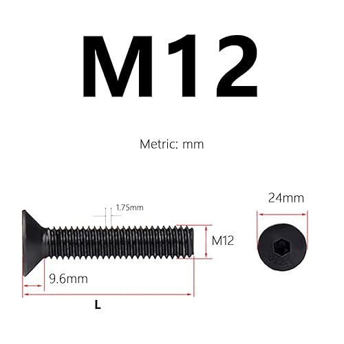 CREULT Senkkopfschrauben Innensechskant M12 x 40mm Länge Flachkopfschrauben Vollgewinde Hochfester Kohlenstoffstahl 12,9 Grad Befestigungselement (4 Stück)
