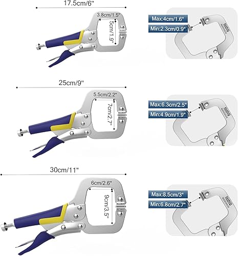 Nuovoware C-Klemme, 3 Stück (17,5 cm & 25 cm & 30 cm) Klemmzangen Set mit Einstellbar Schrauben & Drehgelenk Pads für Holzbearbeitung und Schweißer, Zuhause und Werkstatt - Blau + Gelb
