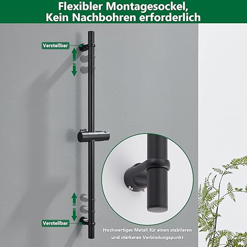 Kelleria Duschstange 70cm Edelstahl SUS304, Brausestange mit Duschkopfhalterung 360°Drehbar, Verstellbare Handbrause Stange Duschkopfhalter Höhenverstellbar, Variable Wandhalter Bohrlöcher, Chrom