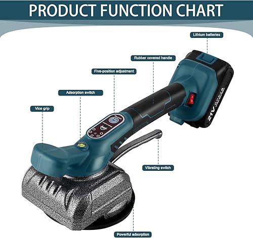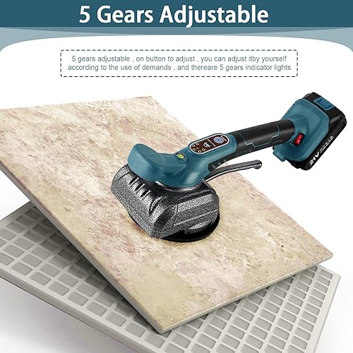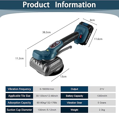 Vibrator für Fliesen mit Akku EUWLY Fliesenfliesenmaschine mit 21 V Fliesenlegerwerkzeuge mit 5 Einstellbaren Gänge, 12cm Saugnapf und 80kg Adsorption zum Verlegen von 0,6-1m Fliesen