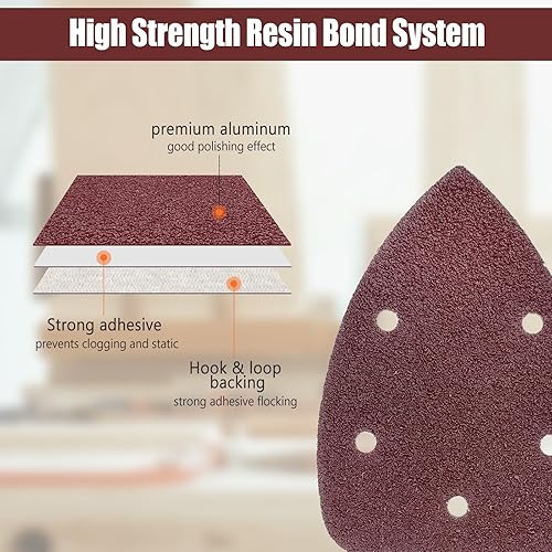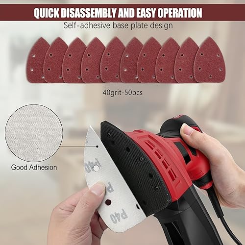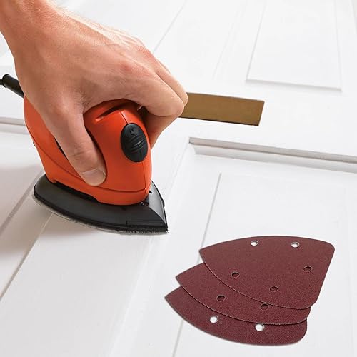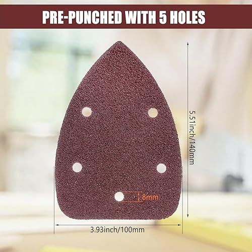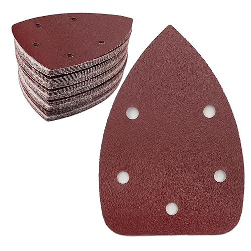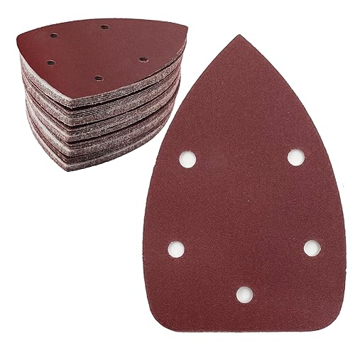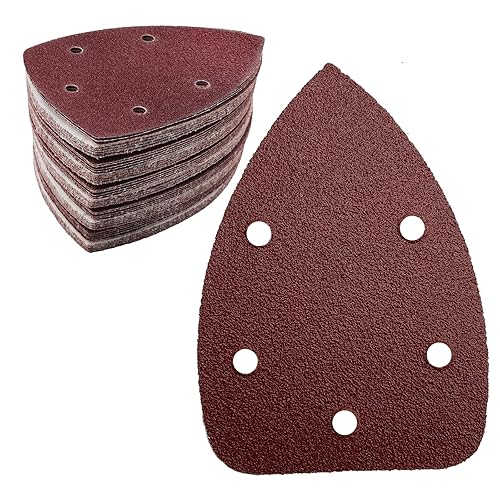 50 Stück Schleifpapier Dreieckschleifer, Gemischte Körnung 5-Loch Schleifpads Klett Schleifpapier (40 80 120 180 240 jede Körnung 10 Stück) Schleifblätter für Dreieckschleifer 140 x 100 mm