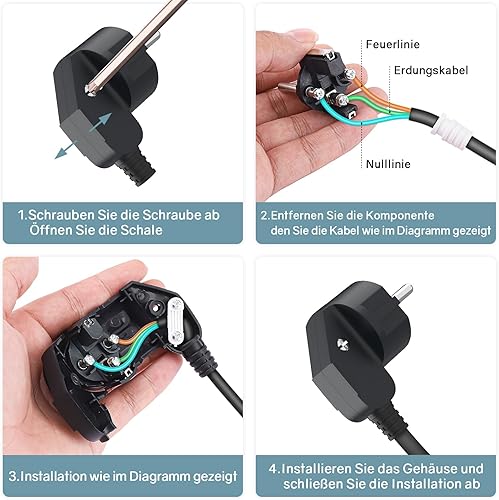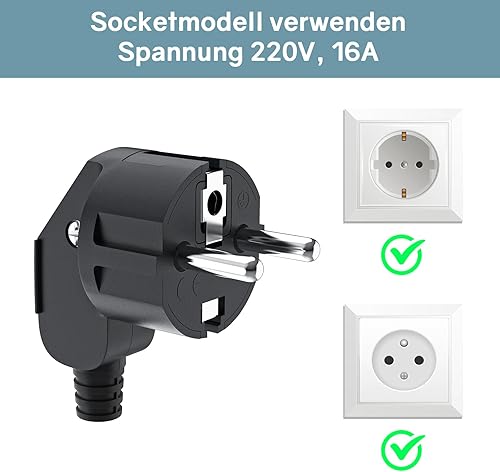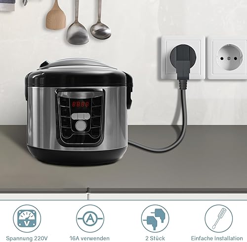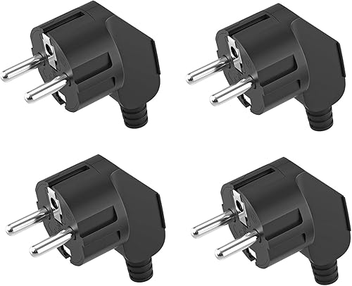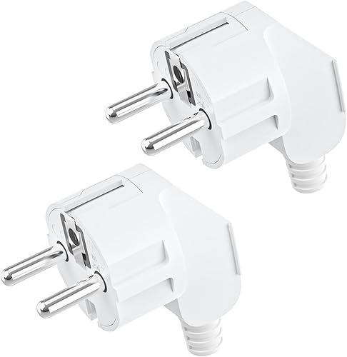 2 Stücke Schuko Stecker,Schutzkontakt-Stecker mit Knickschutztülle,Euro Stecker 250V (16A) für 8-10mm Kabel,Schuko Winkelstecker,Schukostecker Abgewinkelt,IP20 für Den Innenbereich,Schwarz