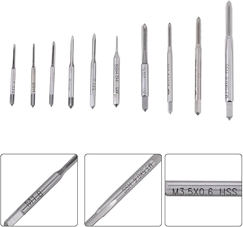 Bindpo Mini Metric HSS Gewindebohrersatz, M1 M1.2 M1.4 M1.6 M1.7 M1.8 M2 M2.5 M3 M3.5 Bohrgewindebohrer, 10 Stück Maschinenhandgewindeschneidwerkzeug für Holz, Kunststoff, Metall