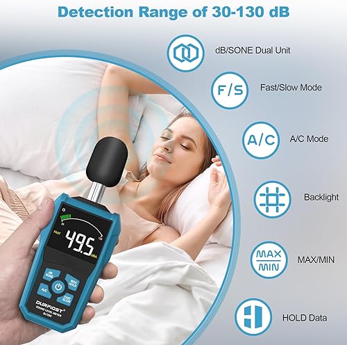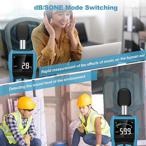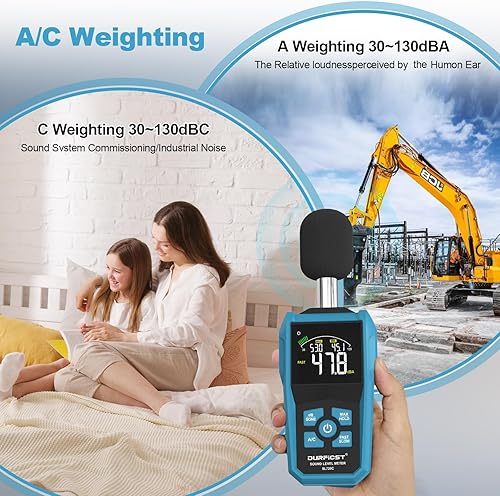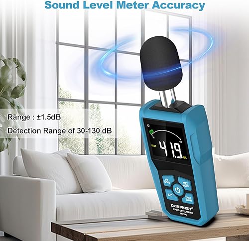 Dezibel Messgerät,DURFICST Schallpegelmessgerät,dB Messgerät mit LCD-Farbbildschirm,dB/SONE-Einheiten Schnellumschaltung,Hintergrundbeleuchtung,A/C-Gewichtet,für Zuhause,Werkstätten