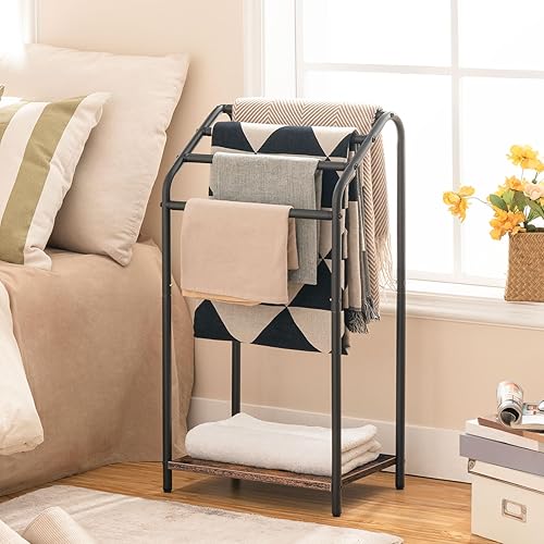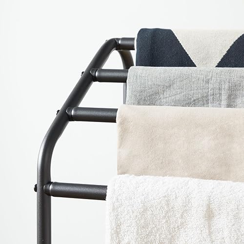 HOOBRO Handtuchhalter Stehend, Groß Handtuchständer mit 4 Handtuchstangen, 41,5 x 28,5 x 79,5 cm, Kleiderständer für Kleidung, Badetücher, Decken, platzsparend, Stabil, Industriestil EBF64LB01