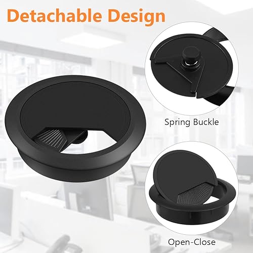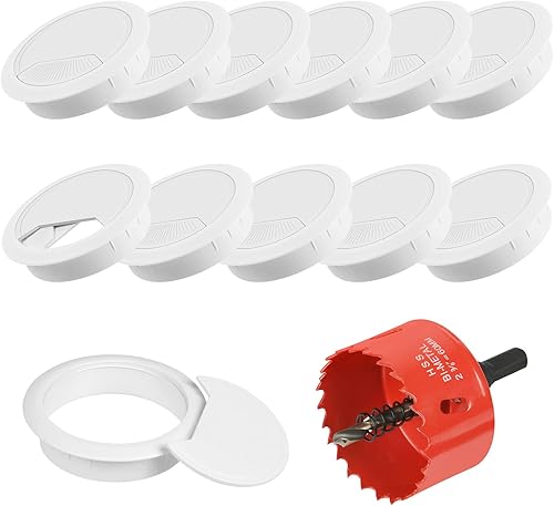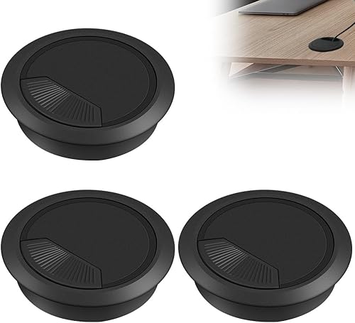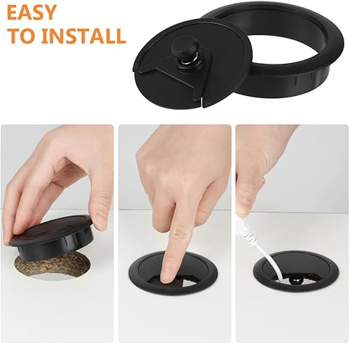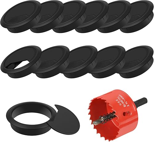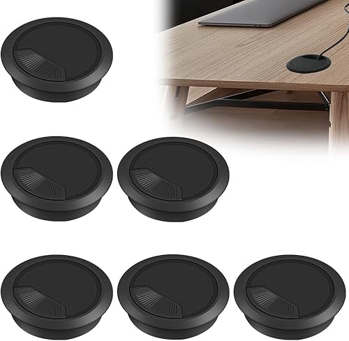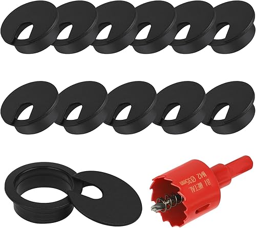 Flintronic 6 Stück Kabeldurchführung Schreibtisch, 60mm Kabeldurchlass mit 1 Lochsäge 60mm, Kabeldurchlass Kabelauslassdose, Schreibtisch Kabellochabdeckungen, für Tisch Büro Schreibtische, Schwarz