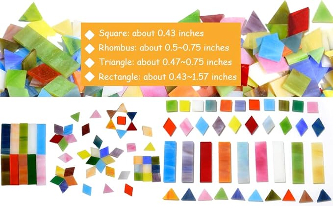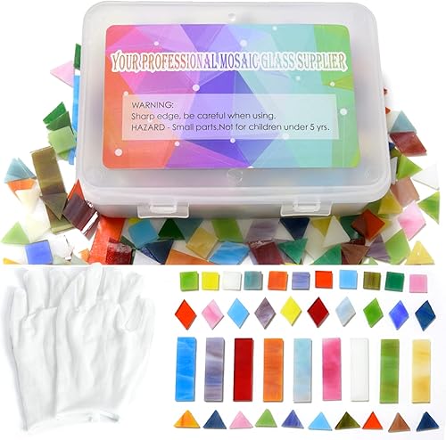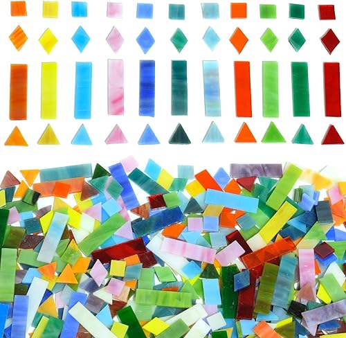 KIPHEPI Glasmosaikfliesen zum Basteln, 500 g, bunte Buntglasteile für Mosaikprojekte für Heimdekoration oder Bastelarbeiten, gemischte Verpackung