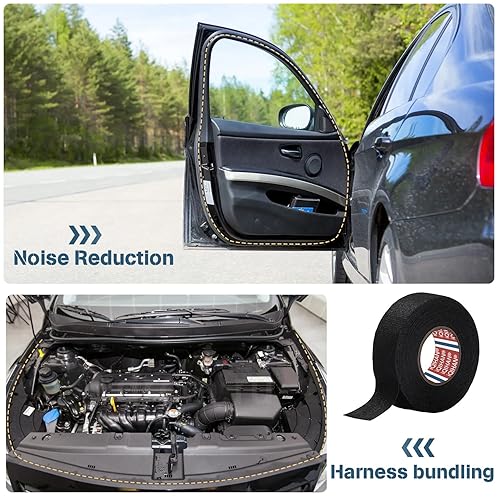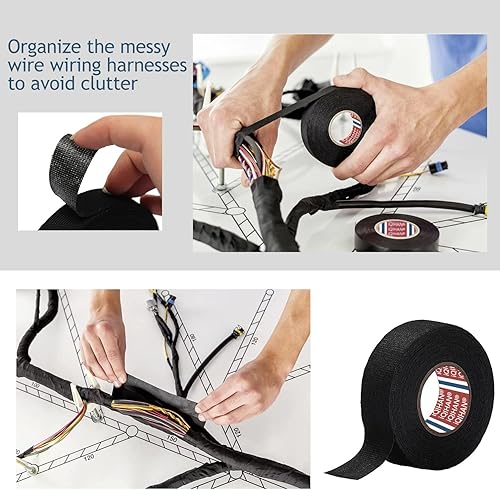 Gewebeband - 2 Rollen klebeband für Kfz Motorrad Auto Kabelbaum Filzband Reparatur Geräuschdämpfung Kabelweben Band - 19 mm x 15 m Hitzebeständiges Isolierband für Auto Kabel Befestigt Schwarz