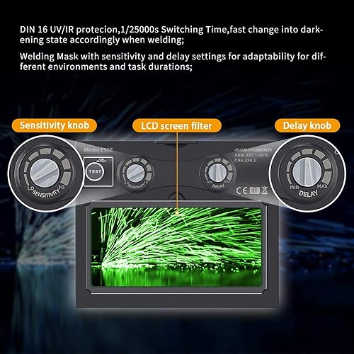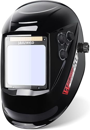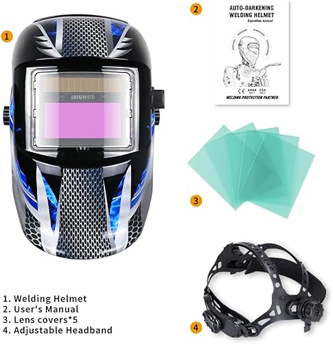 JALUWELD Automatik Schweißhelm Vollautomatik Schweißhelme Automatische Abdunkelung Solar Schweißmaske Großes sichtfeld für die Anwendungen Inkl.5 austauschbare Objektive