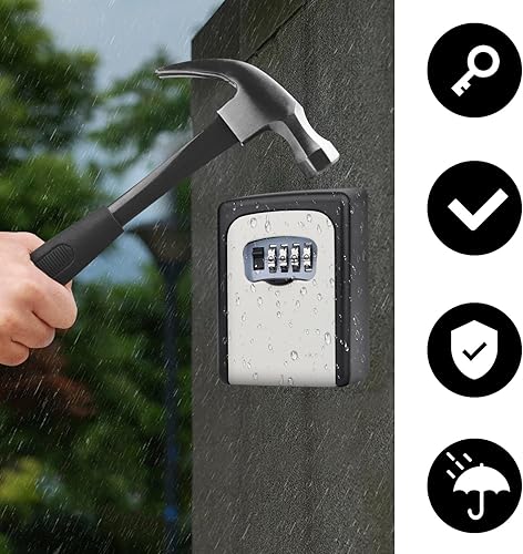 Schlüsseltresor Wandmontage Wetterfest - Schlüsselsafe 4 Stellig, wasserdicht und rostfrei schlüsselkasten, Schlüsselkasten mit Zahlencode Robust, für ersatz hau schlüssel, garagen, Schule, büro