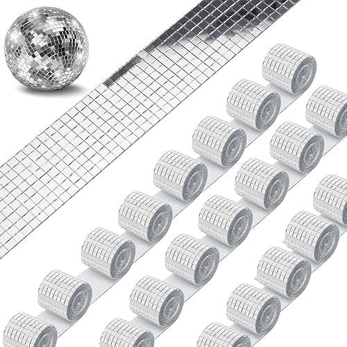 WOOLUCK® 20 Rollen 32000 Stück mosaik spiegel selbstklebend,Mosaikfliesen für Discokugel Basteln,DIY Handwerk Dekoration,KTV (Silber)