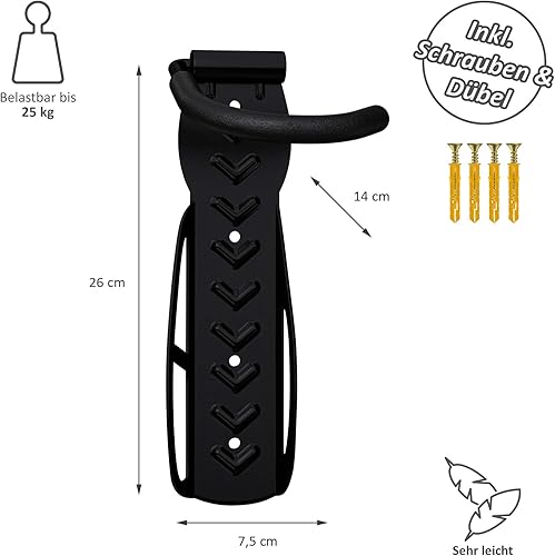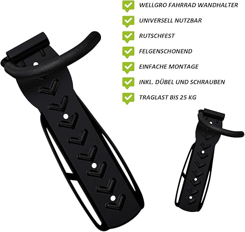 2 x WELLGRO Wand Fahrradhalter - Stahl Fahrrad Wandhalterung - Fahrrad haken - Fahrradständer - Ständer - Farbe wählbar, Farbe:Schwarz