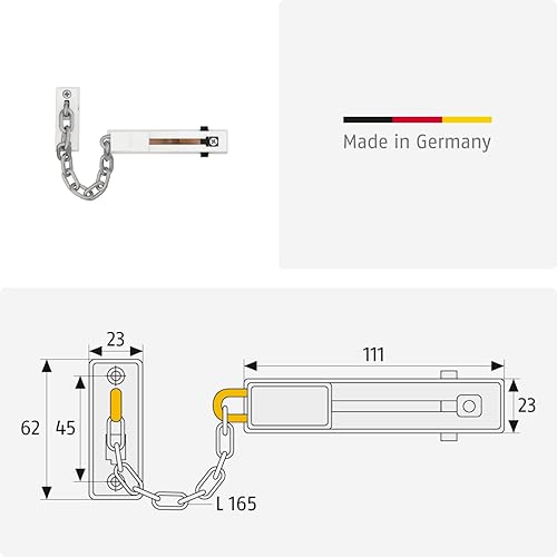 ABUS Türkette SK66 für Haustür und Wohnungstür – Sicherheitskette mit Kindersicherung geeignet für links und rechts schließende Türen – Weiß