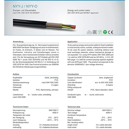 NYY-J 3x1,5 mm² 25m (Variable bis 50m) Erdkabel Starkstromkabel in Beton Erdreich VDE 0276 M113