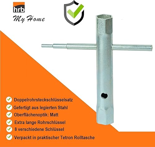 HRB Rohrsteckschlüsselsatz 8-tlg. Größen 6-22 mm inkl. Drehdorn, Schraubenschlüssel Satz in bequemer Tetron Rolltasche, ideales Langnuss Set für Arbeiten am Wasserhahn