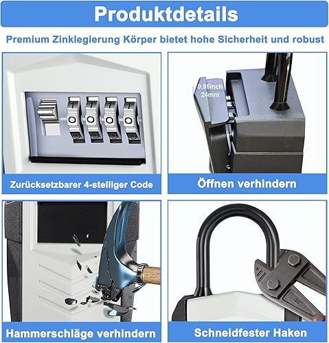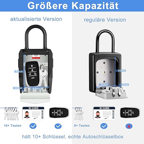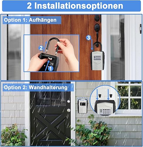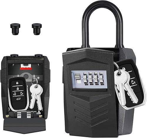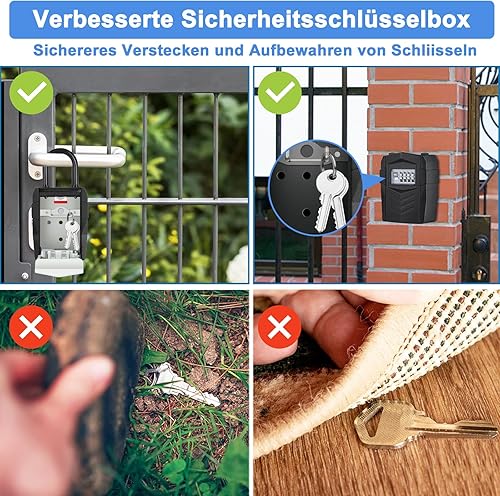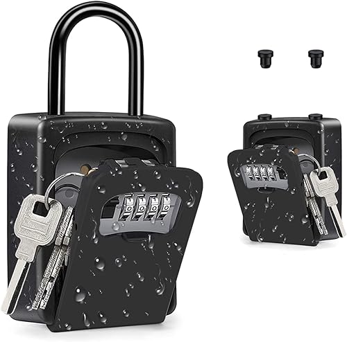 ZHEGE Schlüsseltresor mit Zahlencode 4-Stellig, Kleines Schlüsselsafe Aussen, Schlüsselbox mit Bügel, Schlüsselkasten mit Code, Key Safe, Wetterfeste Schlüssel Safe (Schwarz)