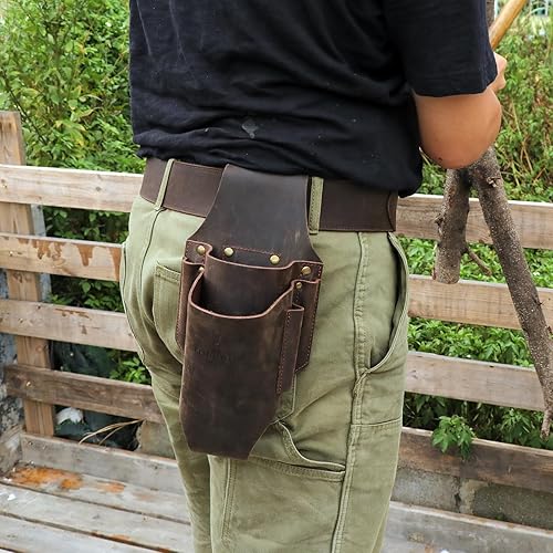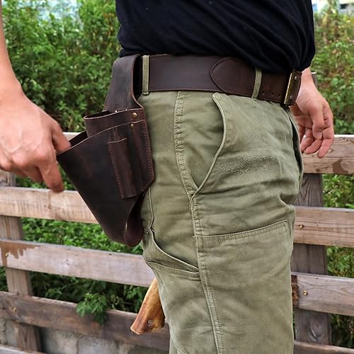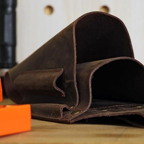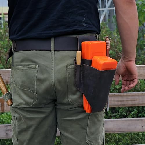 Tourbon Fällkeiltasche aus echtem Leder, 5 Taschen, Gürteltasche, Kettensägenschlüssel, Werkzeugholster zum Schneiden von Bäumen