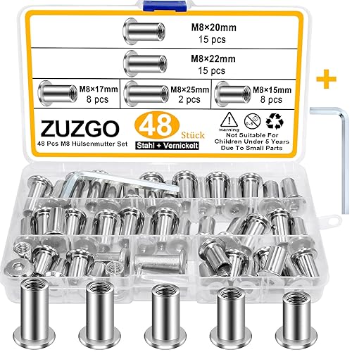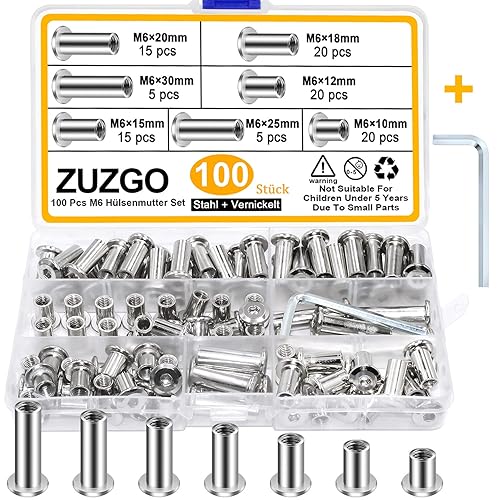 ZUZGO Hülsenmutter M6 M8 Innensechskant Buchschrauben Hülsenmuttern Stahl Vernickelt(100 Stück)