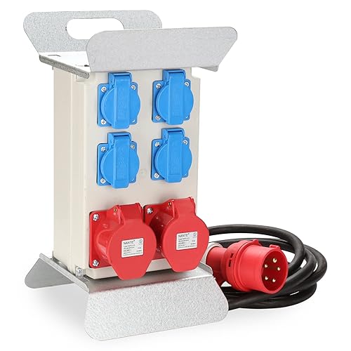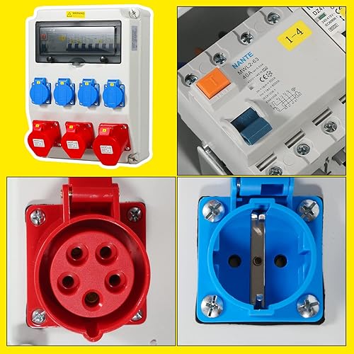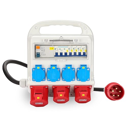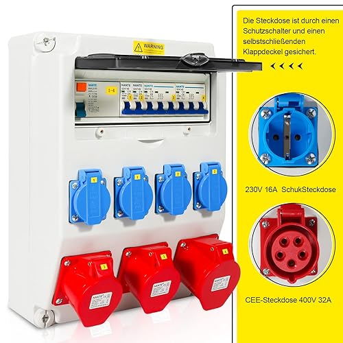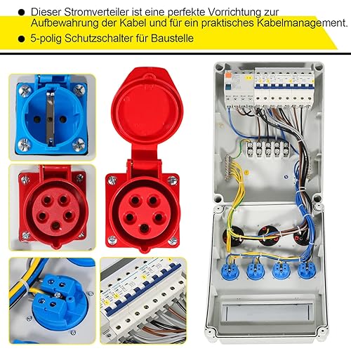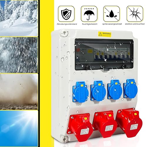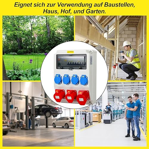 Cecaylie Baustromverteiler 2xCEE 400V/16A 5-polig, 1xCEE 400V/32A 5-polig, 4x230V(Schuko) 2-polig, Wandverteiler Für Baustelle, IP44 wasserdicht, mit FI-Schutzschalter