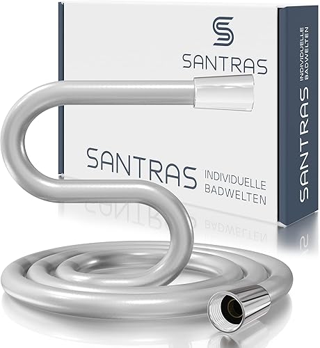SANTRAS® Duschschlauch PREMIUM Chrom 1,00 m MADE IN GERMANY mit Wassersparer – Besonders flexibel und verdrehsicher mit DURCHFLUSSBEGRENZER – Brauseschlauch in Edelstahloptik aus Easy Clean Material