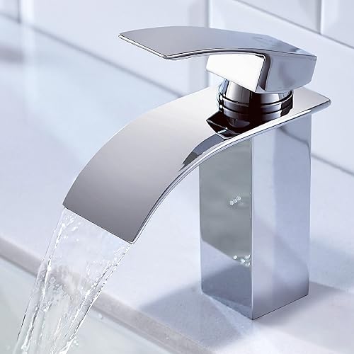 CECIPA Wasserhahn Bad, Wasserfall Wasserhahn Bad Edelstahl Waschtischarmatur Wasserfall mit Auslauf Höhe 84MM Waschbecken Armatur Chrom Einhebelmischer Warm und Kalt wasser Mischbatterien Bad