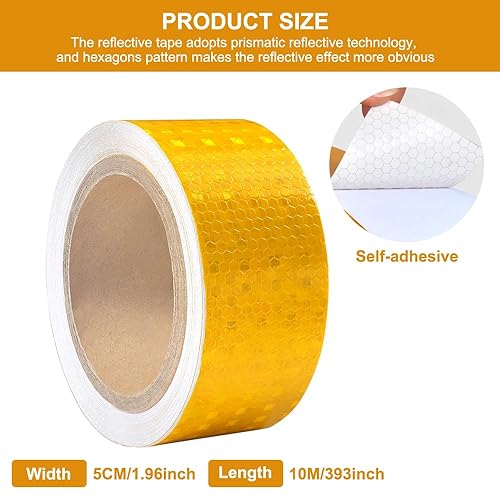 Reflektierendes Klebeband Gelb 10m x 5cm, Wasserdichtes Reflektorband Selbstklebend Reflective Tape Wetterfest Hochintensität Reflektorfolie Selbstklebend Warnband für Straße,Fahrräder,Helme,Motorrad