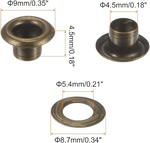 QUARKZMAN 300er Set Ösen-Kit Metallösen 4,5 mm 3/16' Loch Kleine Öse mit Unterlegscheiben für Schuhe Kleidung Gürtel Anhänger Tasche Stoff Leder DIY-Projekt, Bronze