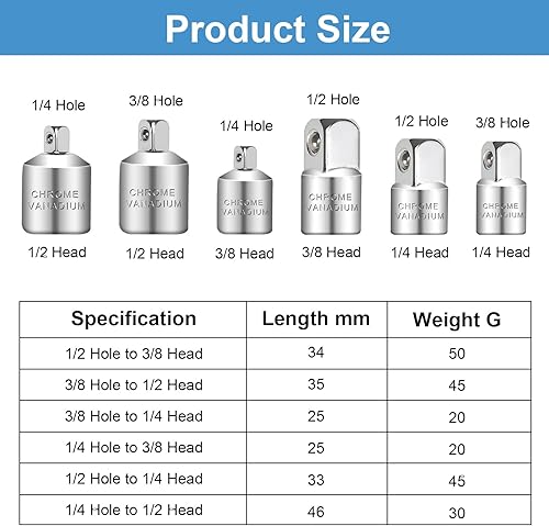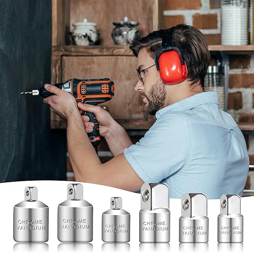 Stecknuss Adapter, 6 Stück Adapter Satz Stecknussadapter Set, Adapter-Set für Ratschen 1/4 auf 3/8, 3/8 auf 1/4, 3/8 auf 1/4, 1/4 auf 3/8, 1/2 auf 1/4, 1/4 auf 1/2 für Steckschlüsseln Nuss Knarren