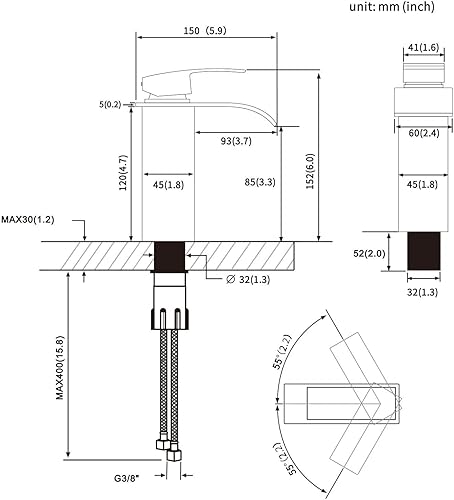 Fdit Wasserhahn Hebelgriff, Küche Badezimmer 35 Mm Zinklegierung Waschtischmischer Wasserhahn Einhebelgriff Ersatz