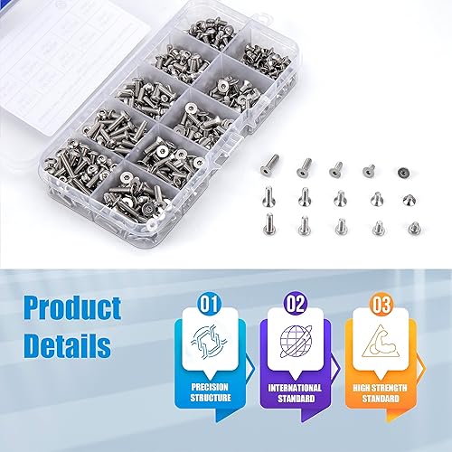 KOXXIAMOQ 500 Stück M3 Schrauben Set, Inkl 250 Stk Senkkopfschrauben Innensechskant Schrauben und 250 Stk Linsenkopfschrauben sechskantschrauben, Maschinenschrauben, Gewindeschrauben Set