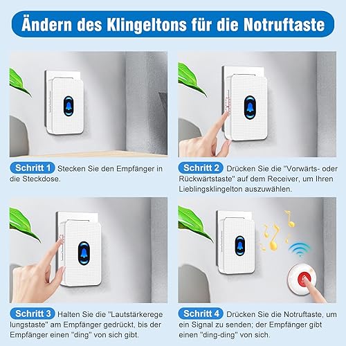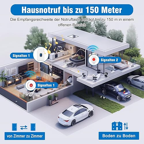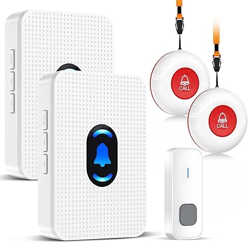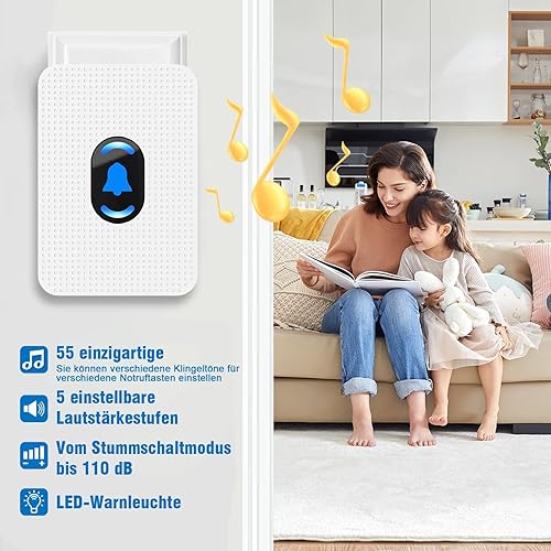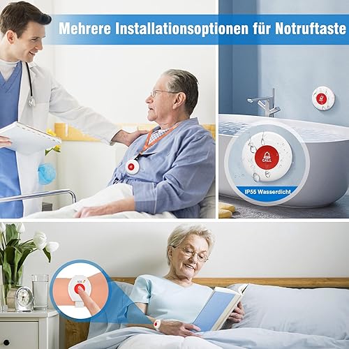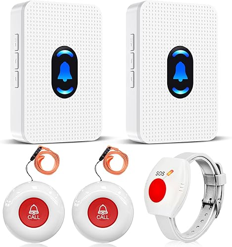 Daytech Notrufknopf für Senioren/Hausnotruf mit Notrufarmband für die häusliche Pflege Notfall Armband senioren für Pflegebedürftige (2xEmpänger+2xSender+1xSOS Armband)
