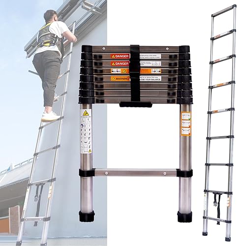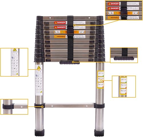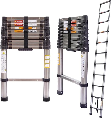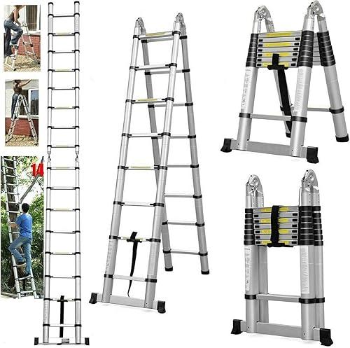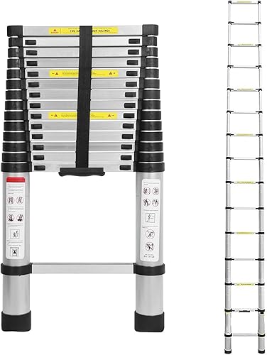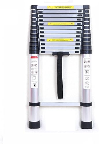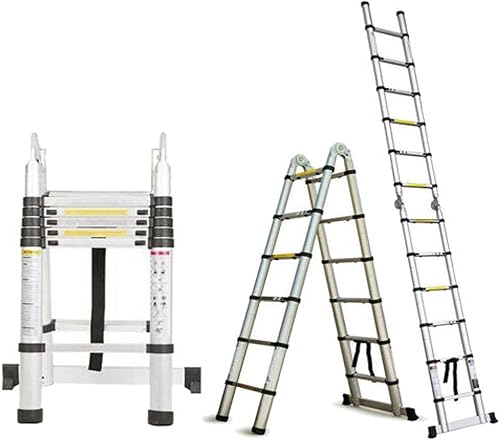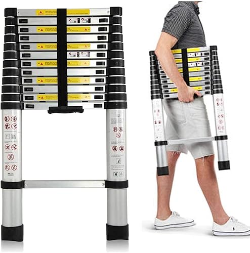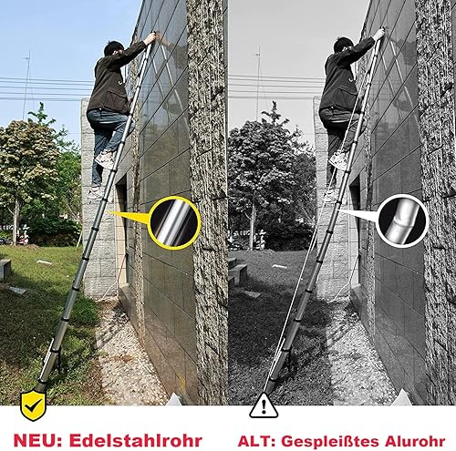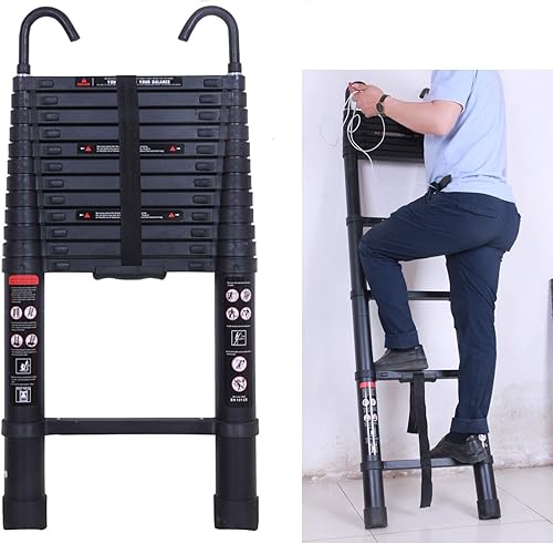 Teleskopleiter mit Haken, 5M Aluminium Ausziehleiter mit Verriegelungsmechanismus, Heavy Duty 150kg Max zusammenklappbare Leiter, Mehrzweck-Industrie-Kompakt-Leiter für Haushalt Outdoor-Arbeit