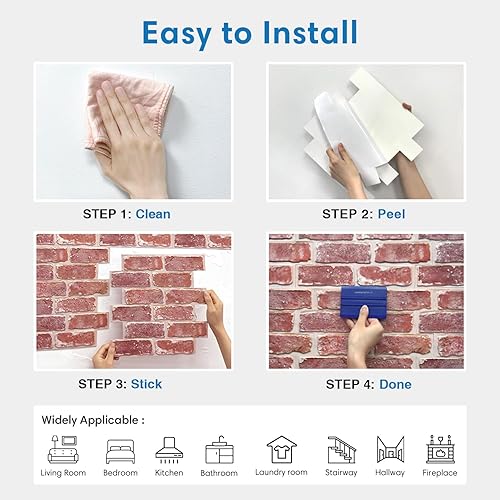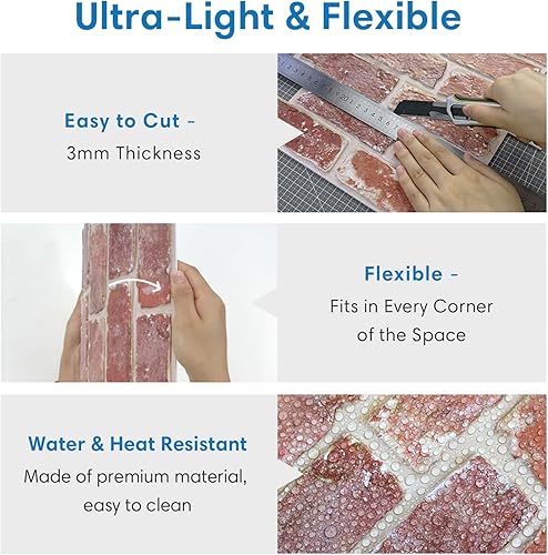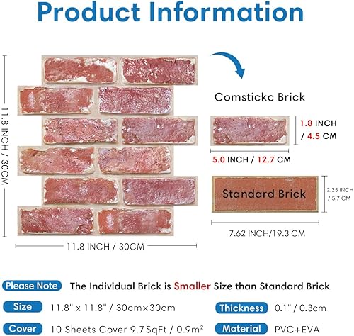 COMSTICKC 3D Wandpaneele Selbstklebend,10 Stück Wandverkleidung Selbstklebend Steinoptik Backstein 3D PVC Wandpaneele,30x30 cm,3D Wall Panel für Innenwanddekoration