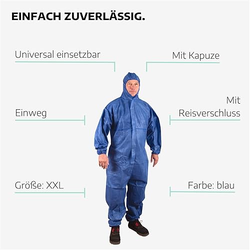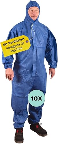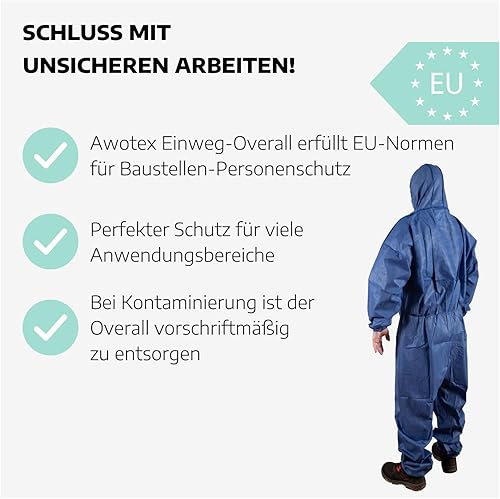 AWOTEX Einweg-Overall Set XXL Kategorie III Typ 5 & 6 in blau I Schutzanzug Einweg I Maleranzug Einweg spritzdicht I Einweg Schutzanzug I Arbeits-Overall Herren & Damen I 4 oder 10 Stk.