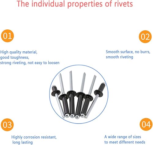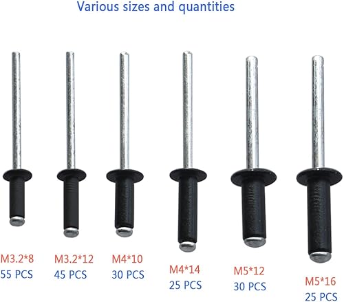 210 Stück Blindnieten Set,Aluminium Dom Großflansch Nieten Sortiment Kit(M3,2/M4/M5) Länge(8/10/12/14/16mm) Popnieten für Metall, Aufbewahrungsbox,Möbel,Marine (Schwarz)