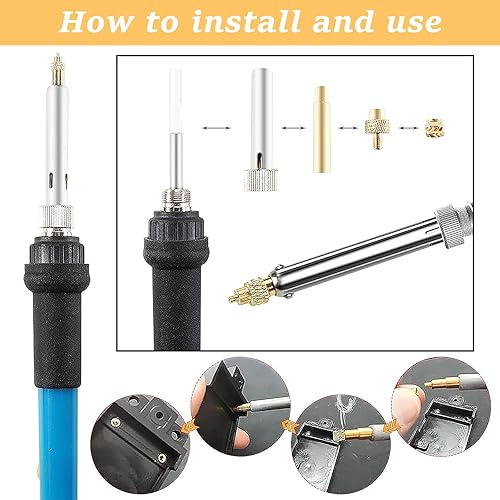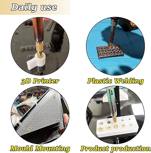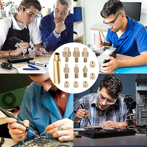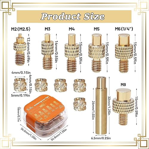 Begpoee 12 Stück Lötkolben Einschmelzhilfe Set, 3D-Drucker-Zubehör Messing Mutter, Lötspitze Aus Messing, Lötspitzen, 3D Drucker Zubehör Lötspitze, Für M2 M3 M4 M5 Innengewinde Rändelmuttern(Gelb)