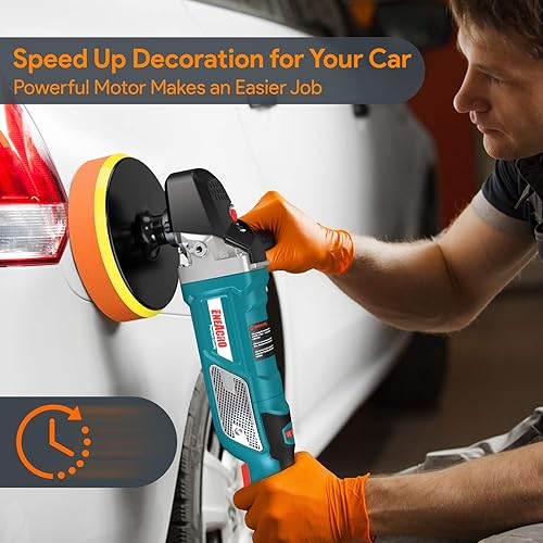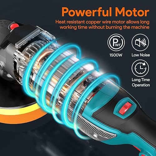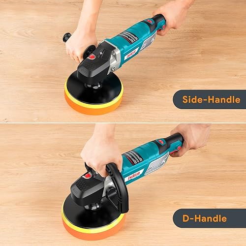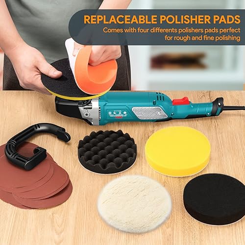 ENEACRO Poliermaschine,1500W Polierer 6 Variable Geschwindigkeit mit 150/180mm Polierteller, D-Griff und Seitengriff, mit 150mm Polierschwamm/Schleifpapier, zum Polieren von Auto, Glas