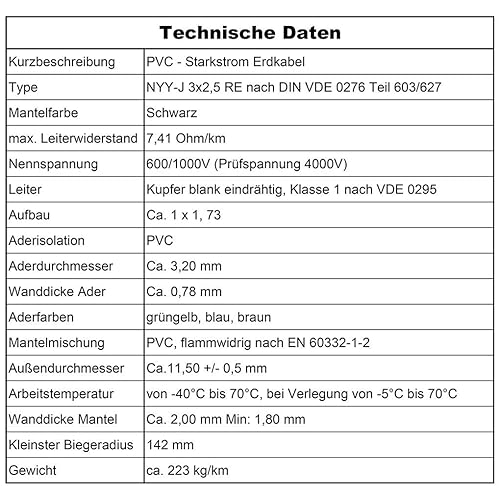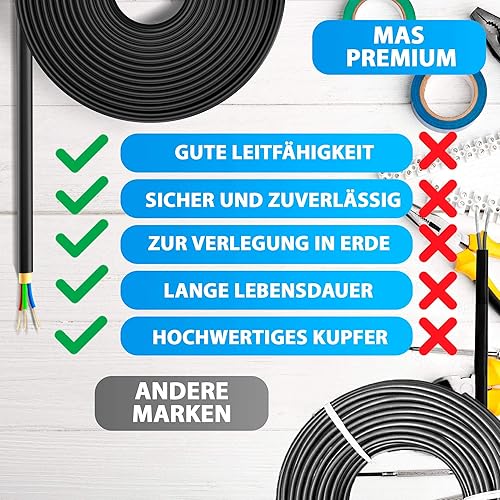 MAS Premium 5-170m NYY-J 3x1,5 2,5 4 6 10 16 oder 5x1,5 2,5 4 6 10 16 Erdkabel Starkstromkabel Elektrokabel Ring zur Verlegung im Freien Erdreich (NYY-J 3x2,5 mm², 20 m)